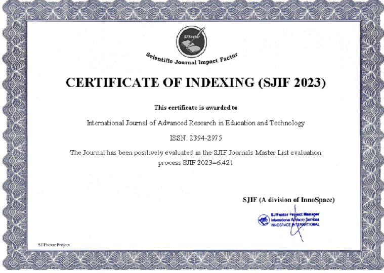 International Journal of Advanced Research in Education & TechnologY (IJARETY) is one of the most Prestigious, High Impact Factor, Open Access, Bi-Monthly, Peer-Reviewed & Referred Journals. IJARETY has started to publish the high quality articles Since 2014.